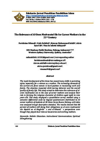 The relevance of al-umm madrasatul ula for career mothers in the 21st century.