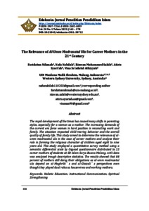 The rapid development of the times has caused many shifts in parenting styles, especially for a woman as a mother. The increasing demands of the current era force women in hard position in reconciling work and family. The situation impacted child-rearing behavior and the overall quality of family life. This study aimed to determine the relevance of al-umm madrasatul ula in the case of career mothers and analyze their role in forming the religious character of children aged eight to nine years old. This study employed a quantitative survey method using a semantic differential scale by Osgood questionnaire distributed to 33 career mothers of students at SD Islam Surya Buana Malang, with data was analyzed trough descriptive statistics. The results showed that 88 percent of mothers still doing their obligations as al-umm madrasatul ula depend on al-Maghribi’s and al-Ghazali’s perspectives even though they played dual roles as housewives and working mothers.