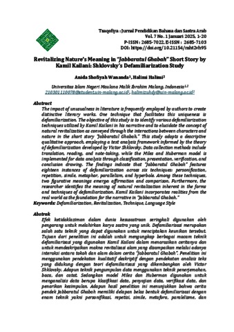 Revitalizing Nature’s Meaning in “Jabbaratul Ghabah” Short Story by Kamil Kailani: Shklovsky's Defamiliarization Study.