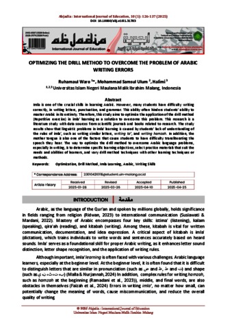 | Keywords: | Optimization, Drill Method, Imla Learning, Arabic, Writing Skills |