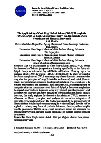 | Keywords: | Cash Waqf-Linked Sukuk, Tafriqus Sufqah, Sharia Compliance, Financial Innovation |