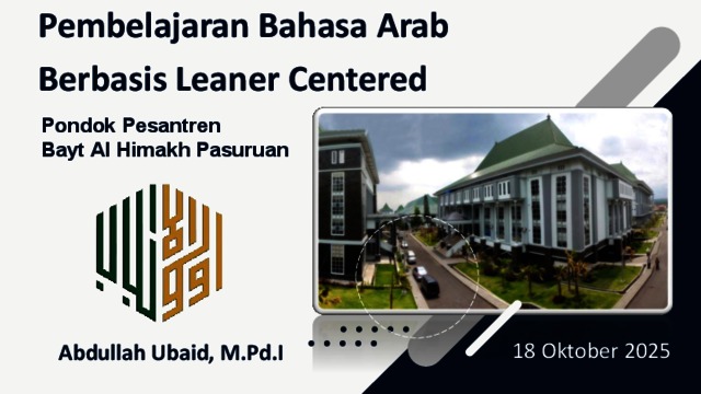Pembelajaran Bahasa Arab Berbasis Leaner Centered di Pondok Pesantren Bayt Al Hikmah Pasuruan.