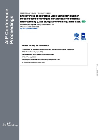 Effectiveness of interactive video using H5P plugin in moodle-based e-learning to enchance teacher students' understanding (case study: differential equation class).