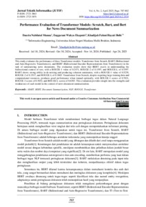| Keywords: | BART; BERT; Document Summarization; NLP; ROUGE; Transformer |