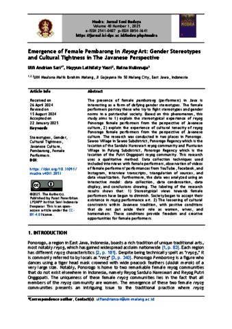 | Keywords: | Stereotypes; Gender; Cultural Tightness; Javanese Culture; Pembarong; Female Performers |