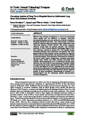 Brawijaya, Fanny, Almais, Agung Teguh Wibowo and Chamidy, Totok (2025) Forcasting analysis of drug use in hospitals based on multivariate long short-term memory networks. G-Tech Jurnal Teknologi Terapan, 9 (4). pp. 2248-2258. ISSN 2623-064X