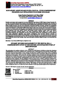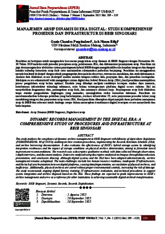 Puspitadewi, Ganis Chandra and Rifqi, Ach. Nizam (2025) Manajemen arsip dinamis di era digital: Studi komprehensif prosedur dan infrastruktur di BBIB Singosari. Jurnal Ilmu Perpustakaan (JIPER), 7 (2). pp. 289-319. ISSN 2716-0432