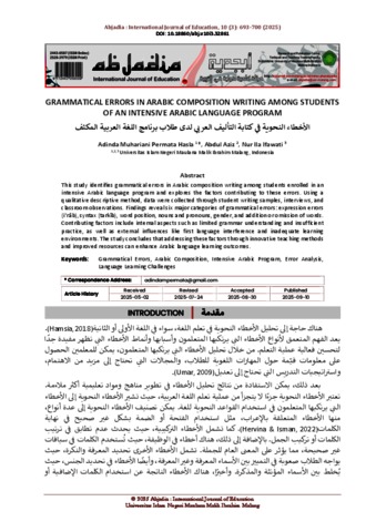 | Keywords: | Grammatical Errors, Arabic Composition, Intensive Arabic Program, Error Analysis, Language Learning Challenges |