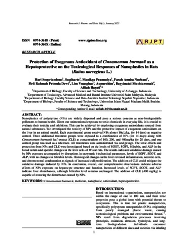 Protection of exogenous antioxidant of cinnamomum burmanii as a hepatoprotective on the toxicological responses of nanoplastics in rats (Rattus norvegicus L.).