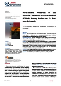 Mahmudah, Siti, Jamaluddin, Muhammad and Adriansyah, Muhammad Ali (2025) Psychometric properties of the Prosocial Tendencies Measure- Revised (PTM-R) among adolescents in East Java, Indonesia. International Journal of Body, Mind and Culture, 12 (2). pp. 90-103. ISSN 2345-5802