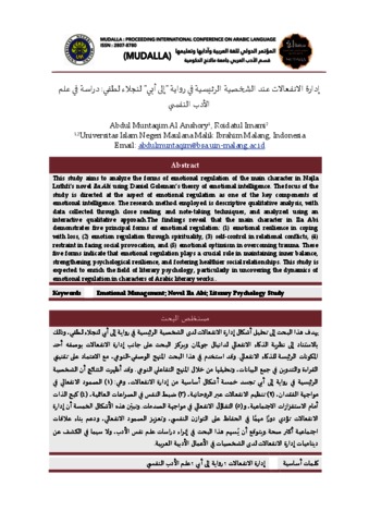 Al Anshory, Abdul Muntaqim and Imami, Roidatul (2025) إدارة االنفعاالت عند الشخصية الرئيسية في رواية"إلى أبي" لنجالء لطفي : دراسةفي علم األدب النفس ي. Presented at MUDALLA: Proceeding International Conference on Arabic Language, Universitas Negeri Malang.