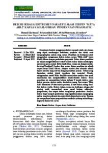 Memahami konteks penggunaan deiksis menjadi salah satu elemen yang dapat membangun kedekatan pembaca dan tokoh serta mengungkapkan makna yang sesuai. Penelitian ini bertujuan untuk menganalisis penggunaan deiksis dalam cerpen “Māta Ahlī” karya Khalil Gibran dengan pendekatan pragmatik. Fokus dalam penelitian ini adalah mengidentifikasi bentuk-bentuk deiksis dalam membangun narasi dan pesan moral. Data diambil dari cerpen ini dengan metode deskriptif kualitatif. Sumber data primer dalam penelitian ini adalah cerpen karya Khalil Gibran. Adapun sumber data sekunder adalah kajian literatur yang relevan dengan penelitian penulis. Teknik yang digunakan adalah teknik membaca dan mencatat. Penulis menggunakan model Miles dan Huberman dalam analisis data untuk menemukan dan mengidentifikasi bentuk-bentuk deiksis. Hasil penelitian ini menunjukkan bahwa terdapat 3 bentuk deiksis, yaitu deiksis persona, deiksis waktu, dan deiksis ruang. Dari cerpen “Māta Ahlī” ditemukan 79 data deiksis persona, 31 data deiksis ruang, dan 5 data deiksis waktu. Deiksis dalam cerpen ini berfungsi sebagai alat penting untuk memperkuat pesan moral tentang solidaritas, pengorbanan, dan empati dalam menghadapi penderitaan. Analisis deiksis dapat menjadi pendekatan yang signifikan dalam mengungkap makna yang tersembunyi dan emosi tokoh dalam karya sastra. Temuan ini memperkaya kajian pragmatik dan membuka peluang terkait fungsi linguistik dalam teks sastra.