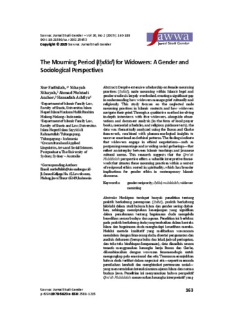 Despite extensive scholarship on female mourning practices (iḥdād), male mourning within Islamic legal and gender studies is largely overlooked, creating a significant gap in understanding how widowers manage grief culturally and religiously. This study focuses on the neglected male mourning practices in Islamic contexts and how widowers navigate their grief. Through a qualitative method involving in-depth interviews with five widowers, alongside observations and document analysis (in the form of local prayer books, memorial schedules, and religious guidance texts), the data was thematically analyzed using the Braun and Clarke framework, combined with phenomeno-logical insights to uncover emotional and ethical patterns. The findings indicate that widowers engage in ethical negotiations—such as postponing remarriage and avoiding social gatherings—that reflect an interplay between Islamic teachings and Javanese cultural norms. This research suggests that the Qira'ah Mubādalah perspective offers a valuable interpretive framework that situates these mourning practices within a context of reciprocal ethics rooted in spirituality, which has broader implications for gender ethics in contemporary Islamic discourse.