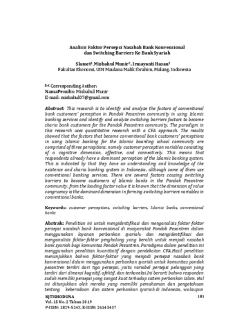 Analisis faktor persepsi nasabah bank konvensional dan switching barriers Ke Bank Syariah.