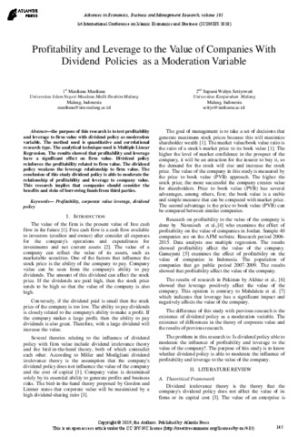 | Keywords: | profitability; corporate value leverage; dividend policy |